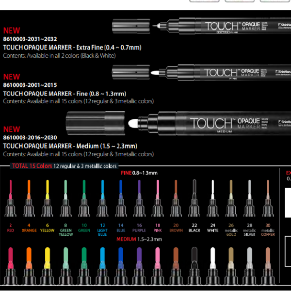 ماژیکهای TOUCHدر 204 رنگ، با قابلیت شارژ جوهر و تعویض نوک  دارای ویژگی های زیر می باشند: